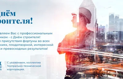 Поздравляем Вас с профессиональным праздником — с Днём строителя! Желаем присутствия фортуны во всех начинаниях, плодотворной, интересной работы и превосходных результато...